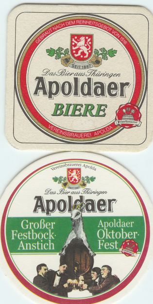 Biersorten : Apoldaer Glocken hell, Glocken Pils, Spezial Domi, Premium Pils, Export, Diät Bier, Festbock , Gambrinus Pilsner, Urtyp,